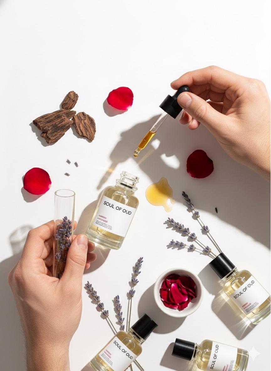 Every Soul of Oud fragrance begins with inspiration and precision. We blend the depth of tradition with the elegance of modern craft, creating scents that feel timeless yet unique. From selecting rare ingredients to perfecting each note, our process reflects patience, mastery, and soul.